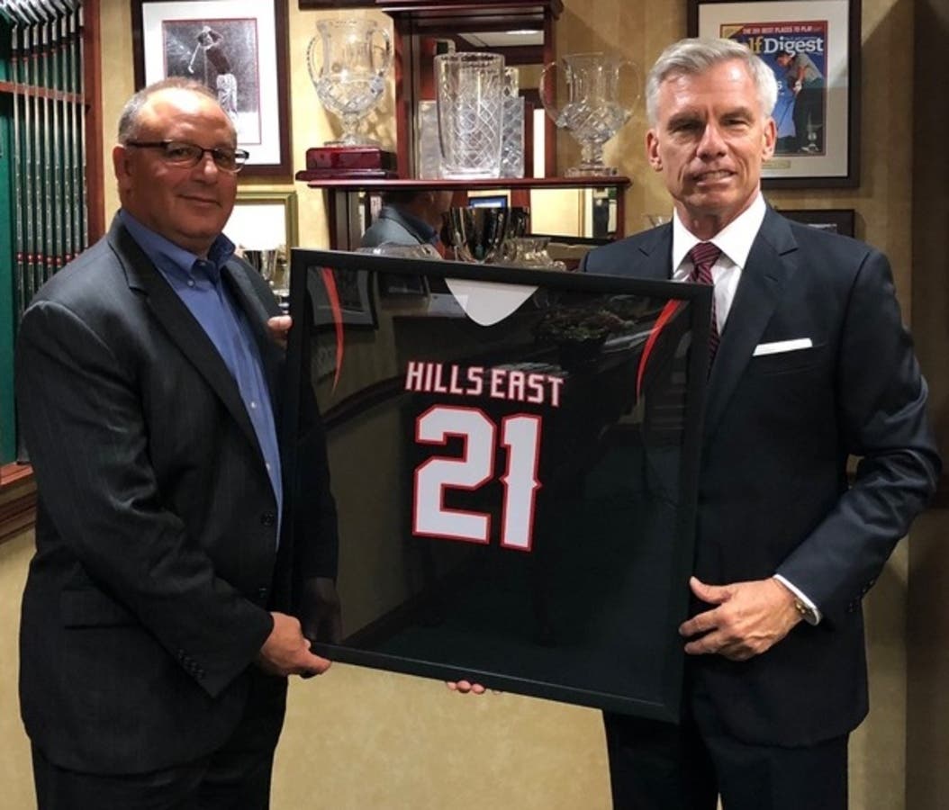 Half Hollow Hills High School East recently retired the lacrosse jersey of James C. Metzger, the founder and COO of The Whitmore Group, a leading personal and commercial insurance brokerage firm in Garden City. Metzger was a three-sport star student-athlete at the school during the 1970s.