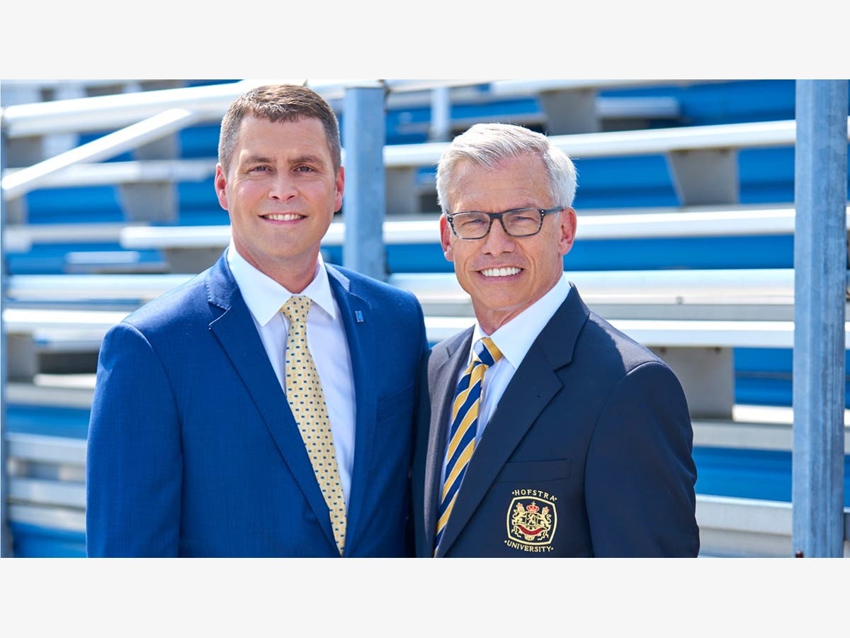 Photo: This photograph of Hofstra Athletics Director Rick Cole, Jr., (on the left) with The Whitmore Group's James C. Metzger appears with the current Social Life Magazine article. Courtesy Social Life Magazine