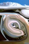 A more traditional photograph with a black and white look is "Ditch Plains" by Jan Altes. The mood is reminiscent of California surfers during the 1960s, especially with cliffs in the landscape. Surprisingly, this photo was taken in Montauk, "one of my favorite haunts," says Altes. "It was taken in 2009. I arrived at the beach, dropped everything, ran and managed to get three shots before the light changed and the people dispersed."