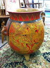 Large Red and Gold Planter Table with Glass Top