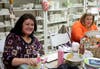 "When I went to paint pottery years ago, I don't remember it being things that I actually use everyday; I was making the Christmas tree and the bank and the dolls," said another regular customer, Linda Torretta of East Meadow. "Now I am making things that I use everyday." She finished designing and painting salt and pepper shakers to match a set of dishes that her mother recently purchased from a department store and is now painting a coordinating pasta tray.