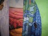 Oz surrounds museum visitors, who will notice witches' legs peeking out from under the building, a yellow brick road in the lobby and characters in a cyclone-effect in the entrance ceiling.