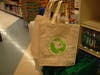 Natural Market sells reusable green bags with the words "recycle, reduce, reuse" circling the bag. Customers can purchase the bags for 99 cents or step up to a higher-quality reusable bag for $1.99. A worker at the store said customers have been opting for the $1.99 bag, which includes the Natural Market logo. The store does not incentivize customers who shop with the bags. Natural Market offers a recycle bin for disposable plastic bags near the entrance on Seventh Street.