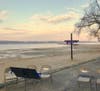Organizers for the First Annual Bilingual Community Easter Dawn Service held in Glen Cove’s Morgan park erected a temporary cross on the beach. The cross and the harbor set the stage for a moving service attended by over 100 people from Glen Cove and the North Shore of Long Island.