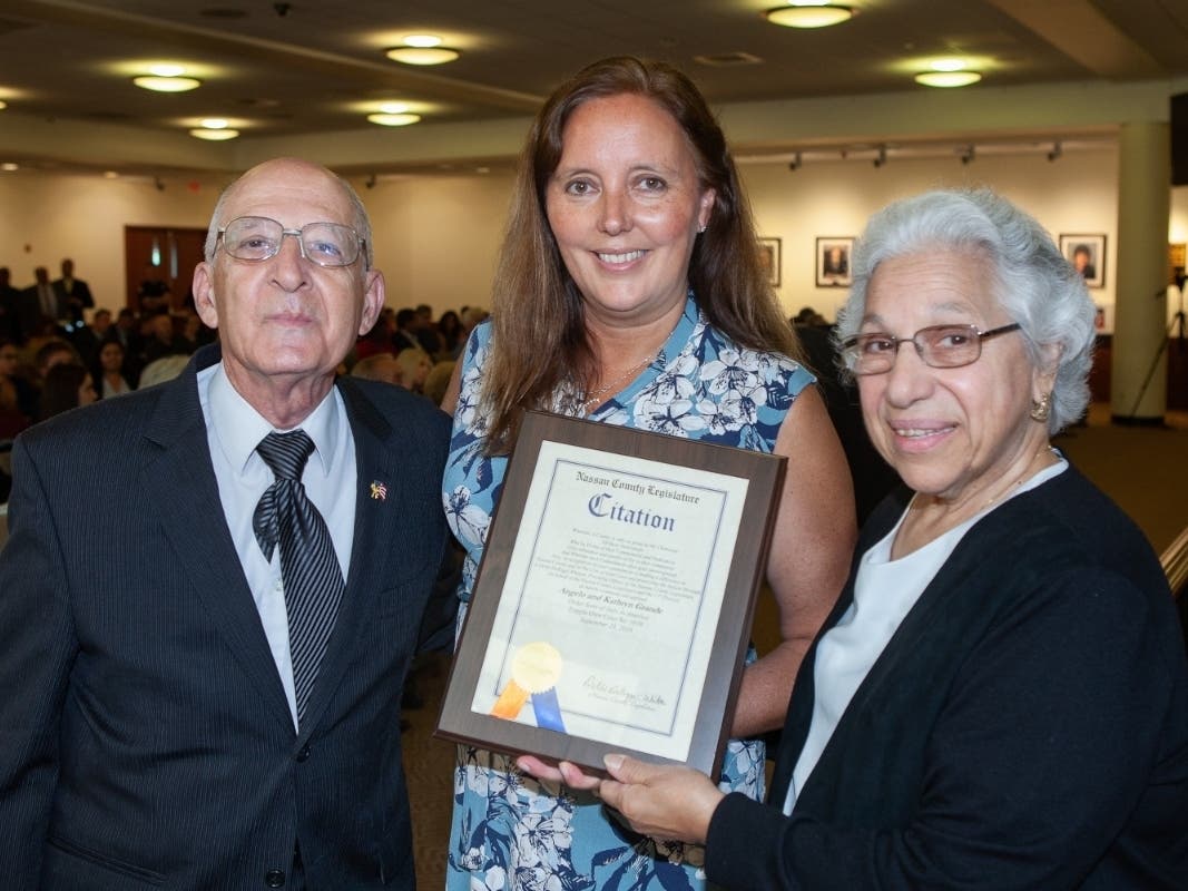 Nassau County Legislator Delia DeRiggi-Whitton recently honored Angelo and Kathryn Grande for their decades-long work in helping to preserve Italian heritage and culture. The Grandes have been active members of the Order Sons of Italy in America Loggia Glen Cove #1016 for more than 40 years. Kathryn and Angelo served as Loggia President from 2000 to 2002 and 2004 to 2006, respectively. Throughout their tenure with the Loggia, they have remained focused on preserving the rich heritage and culture of Italy, which includes organizing displays, meetings, speakers, fundraisers and many other events.
