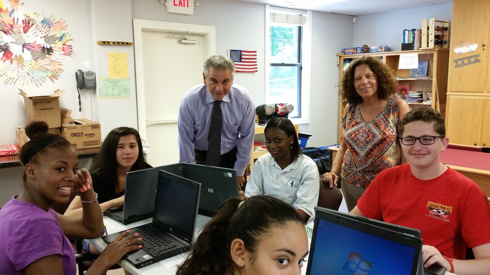 Photo: Glen Cove Mayor Reggie Spinello and Youth Bureau Executive Director Arlene O’Dell were on hand as some of the students who are participating in the Youth Bureau’s Summer Youth Employment Program tried out the new computers.