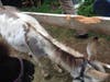 “In one manure-filled paddock on the property, a grey and white male donkey was found with open wounds on his legs. In another paddock on the property, part of the fence was found missing, and various ropes and garbage strewn about. In one section of the property, part of a wooden fence appeared to have been chewed off by an animal that had not received enough food to eat.”