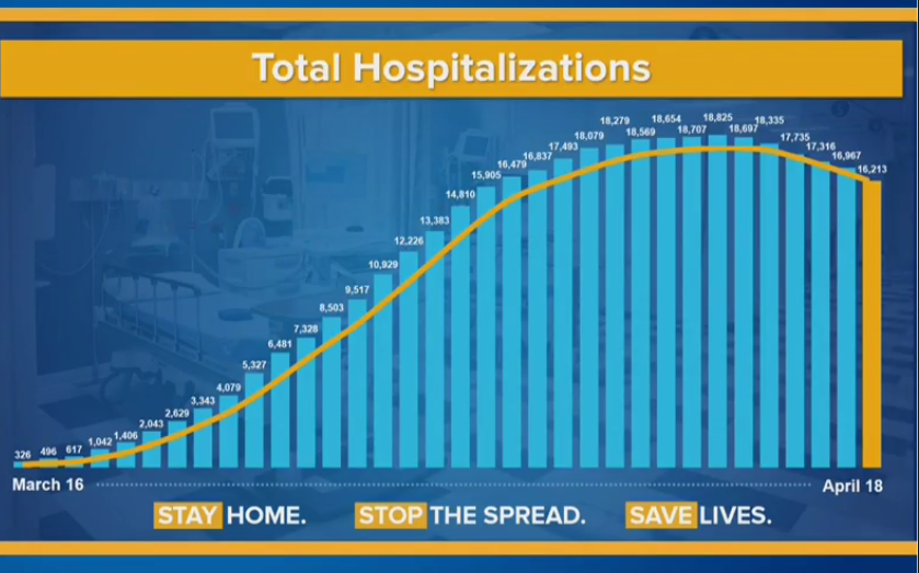 Hospitalizations have dropped to about 16,000 from a high point of about 18,000, the governor said.