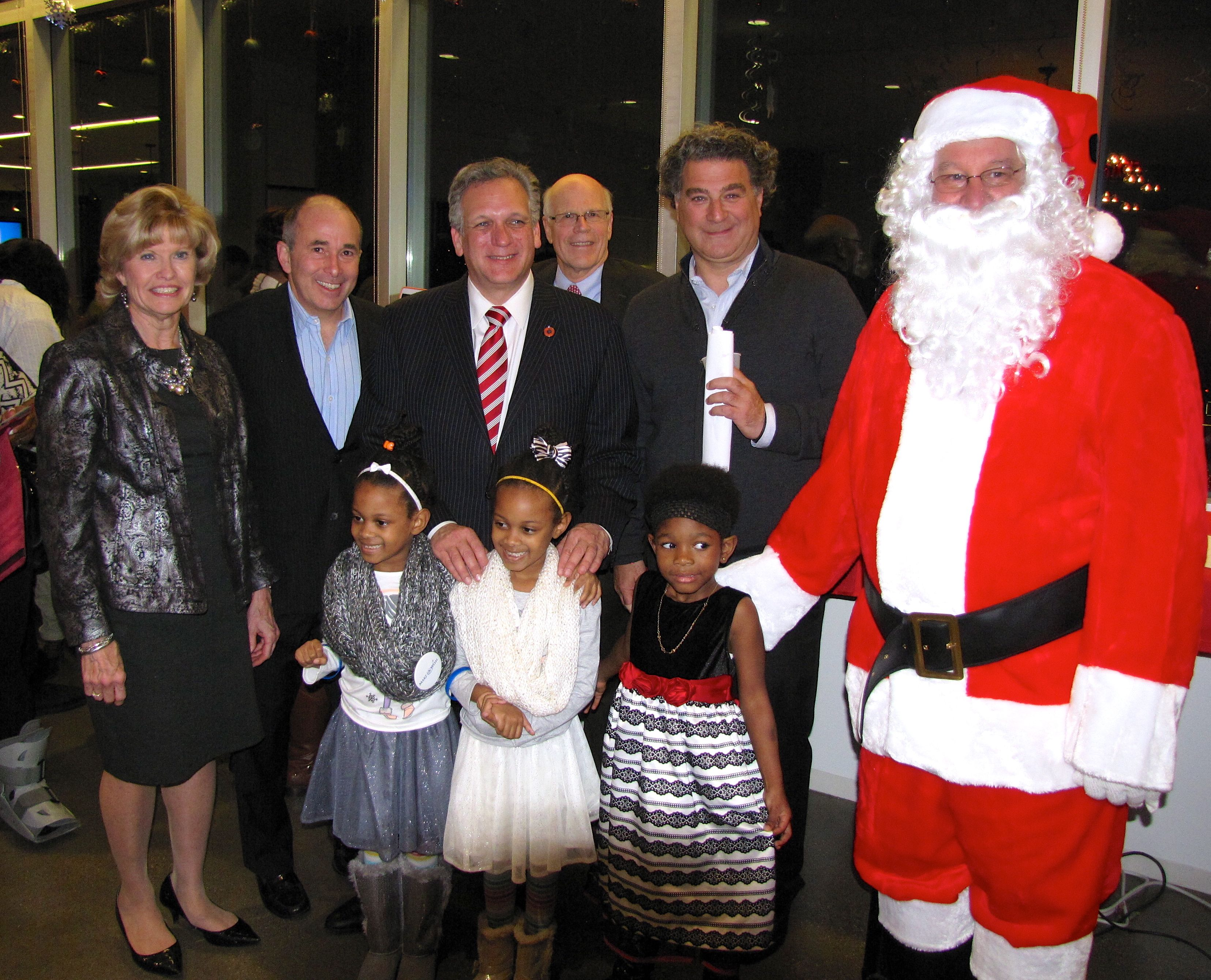 Photo Caption:(l-r): Patricia Clemency, President and CEO, Make-A-Wish® Metro New York and Western New York; George Mullen, Regional Vice President, Winthrop Management LP; Edward P. Mangano, Nassau County Executive; Edward H. Morgan, President and CEO, The Bowery Mission; Irwin D. Simon, Founder, President & CEO, The Hain Celestial Group, Inc.; Santa Claus