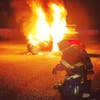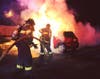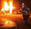 Firefighters arrived to a fully engulfed Mini Cooper in the back parking lot.