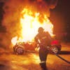 The driver and her young child safely escaped the car uninjured when the fire started.