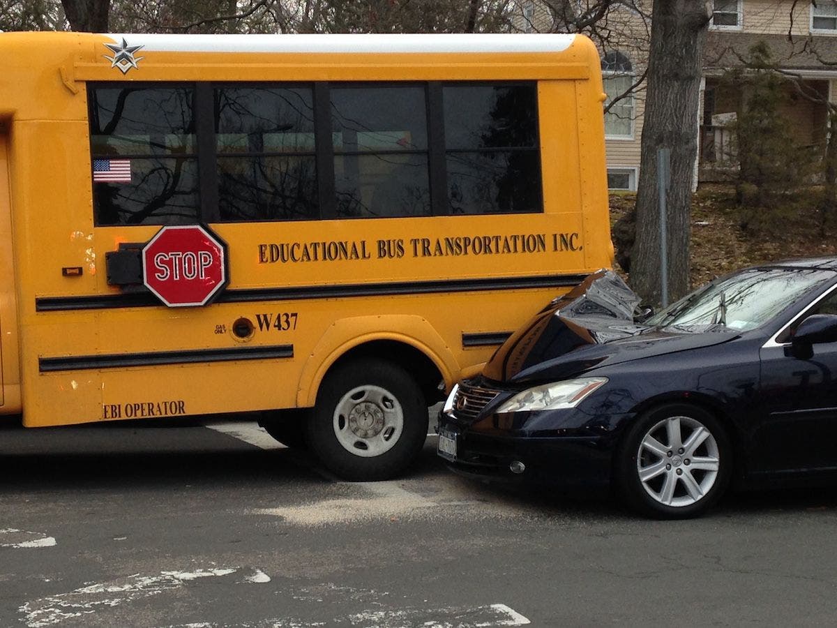 A mini-school bus with a child passenger was rear-ended by a car Friday morning in Melville.