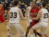 The lead was cut to five again (69-64) after several more foul calls, when Corso bucketed his final three and Hills East called its final time-out with just 18.6 seconds left. Jimmy Reiser (three points) fouled North's David Brown (20 points), allowing Brown to go 1-for-2. A final foul call let North's Nick Gallina (five points, eight assists) shut the door, where he also went 1-for-2.