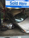 Crash Causes Car to Topple Off Lift in Melville Gas Station