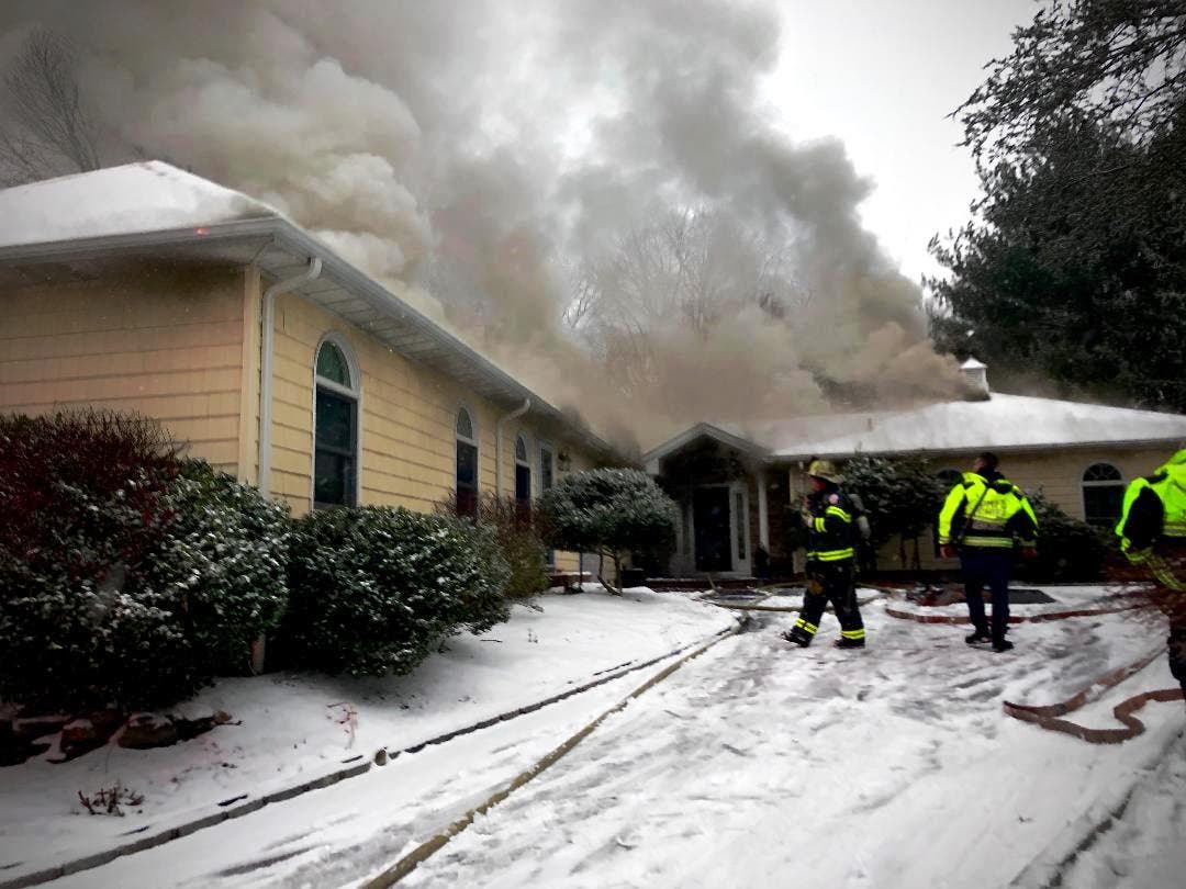 Berkowitz praised his firefighters for fighting a tough fire under difficult conditions because of the snowstorm that blanketed the area.
