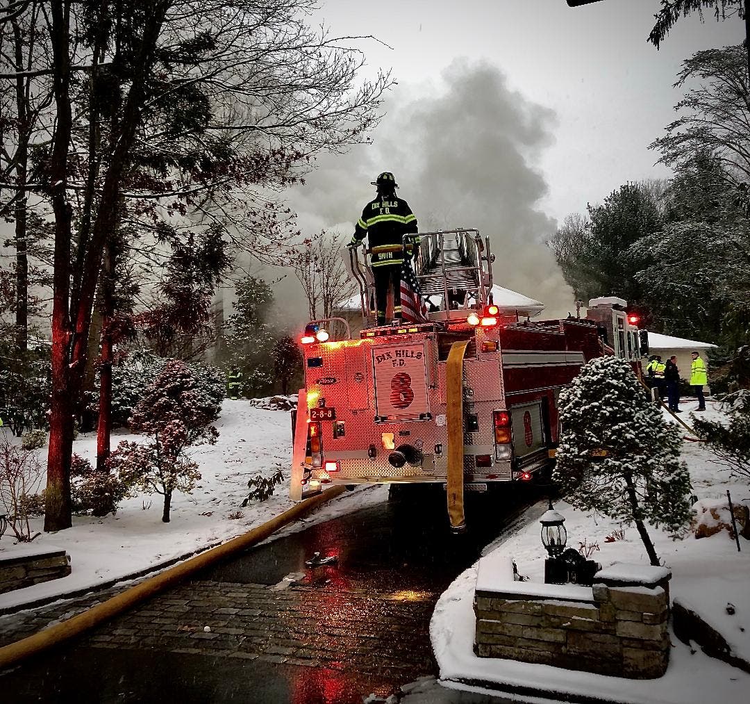 Help came from other fire departments: Commack, Deer Park, Greenlawn and Huntington Manor, with Melville FD and Huntington Community First Aid Squad handling standby coverage for Dix Hills. About 80 firefighters and rescue personnel were at the house with 10 trucks and three ambulances, under the direction of Chief Alan Berkowitz and Third Assistant Chief Scott DiPino.