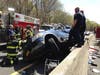 A driver was rescued from a vehicle that flipped over the center divider on the Northern State Parkway on Thursday, May 7.