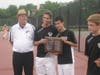 The Thunderbirds kept their championship hopes alive with consecutive wins in the fourth doubles and second doubles matches. First, Alex Schnaff ad Jeff Cherkin defeated Alex Fontini and Brett Titcomb, 6-3, 6-4, followed by a win for Chris Hunt and Sam Goldberg over Conor Mullins and John Paris, 6-3, 6-4.