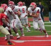 The first quarter was scoreless, however the Redmen began the second quarter strong with Tyler Rigo getting the first touchdown of the game at the 9:12 mark. After a successful one-point conversion by Matthew Walter, the score stood at 7-0 Redmen.