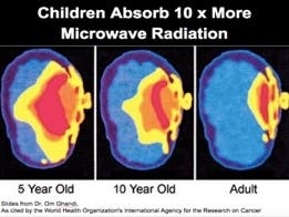 Radio frequency fields are part of the electro magnetic spectrum which produce varying levels of radiation. What was not publicized until recent unclassified military reports were revealed was that excessive levels of RF exposures can lead to adverse health effects. Current Federal Communication Commission (FCC) guidelines are for thermal effects only, which excludes the possibility of any biological effects. Standards established in 1996 were based on military science data from the 1980’s and the International Commission on Non-Ionizing Radiation Protection (ICNIRP) suggestions. Markedly, these standards have never been updated. To lend perspective on the time line of technologies we use today, WiFi availability first began in 1999, cell phones like the Nokia candybar were introduced to the market in 1998 and the invention of the iPhone was only a mere decade ago in 2007. The U.S. has acceptable exposure limits set at 1,000 times higher (as shown in Fig.1) than some other countries and there are no agencies regulating these limits. According to the American Academy of Pediatrics website “ Another problem is that the cell phone radiation test used by the FCC is based on the devices' possible effect on large adults—not children. Children's skulls are thinner and can absorb more radiation.” The FCC recommends that a mere 6 minutes be the allowed exposure time for occupational controlled exposures and only 30 minutes for non-controlled general population exposures. That’s a pretty hard guideline to follow when children and staff are in school for an average 6 hours a day chronically exposed to wireless access points installed in the ceiling of classrooms as well as multiple wireless devices used for educational learning purposes right at their desks. As said by EMF expert and environmental toxicologist Dr. Magda Havas in the documentary film “Generation Zapped”, “You have an analogy of a classroom like the inside of a microwave set at very low power. Children are exposed to that WiFi radiation 6 hours every school day, 5 days a week and for several months during the year, 13 years of school is a very disturbing trend that we are setting up by irradiating some of the youngest and most vulnerable people in our population.” (as shown in Fig.2)