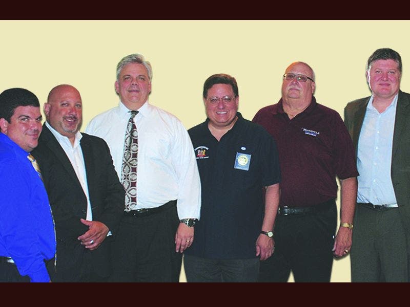 PHOTO CAPTION: Pictured from left to right at a recent Nassau Suffolk Water Commissioners’ Association meeting that received provided Long Island water commissioner NSWCA members with a comprehensive update on state of the art cybersecurity measures as they apply to the water supply industry and Long Island suppliers are: NSWCA Second Vice President and Westbury Water District Commissioner Vincent Abbatiello; Guest speaker Jonathan Berlin of Total Technology Solutions; NSWCA President and Massapequa Water District Commissioner Raymond Averna; NSWCA First Vice President and Plainview Water District Commissioner Andrew Bader; NSWCA Treasurer and Hicksville Water District Commissioner William Schuckmann; and Guest Speaker James Tauer of Total Technology Solutions.