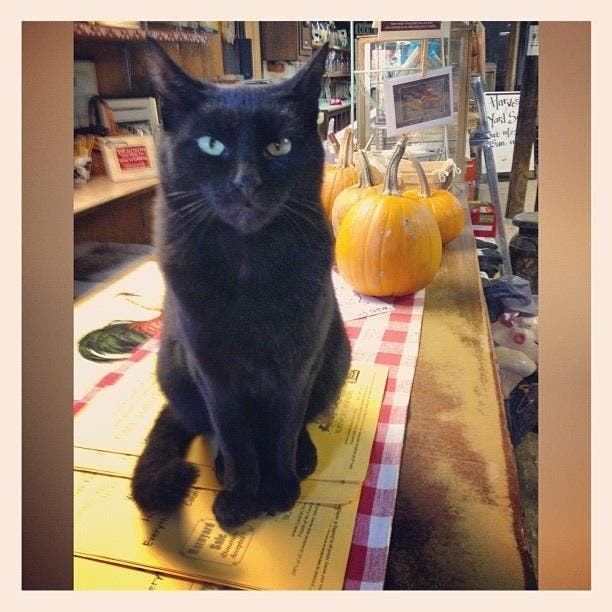 The little black cat and her twin sister Sabrina were rescued from a feral cat colony about seven years ago by barn manager Lorene Eriksen.