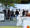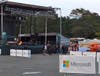 Crew at Whitman mall gets ready for concert tied into Microsoft opening.