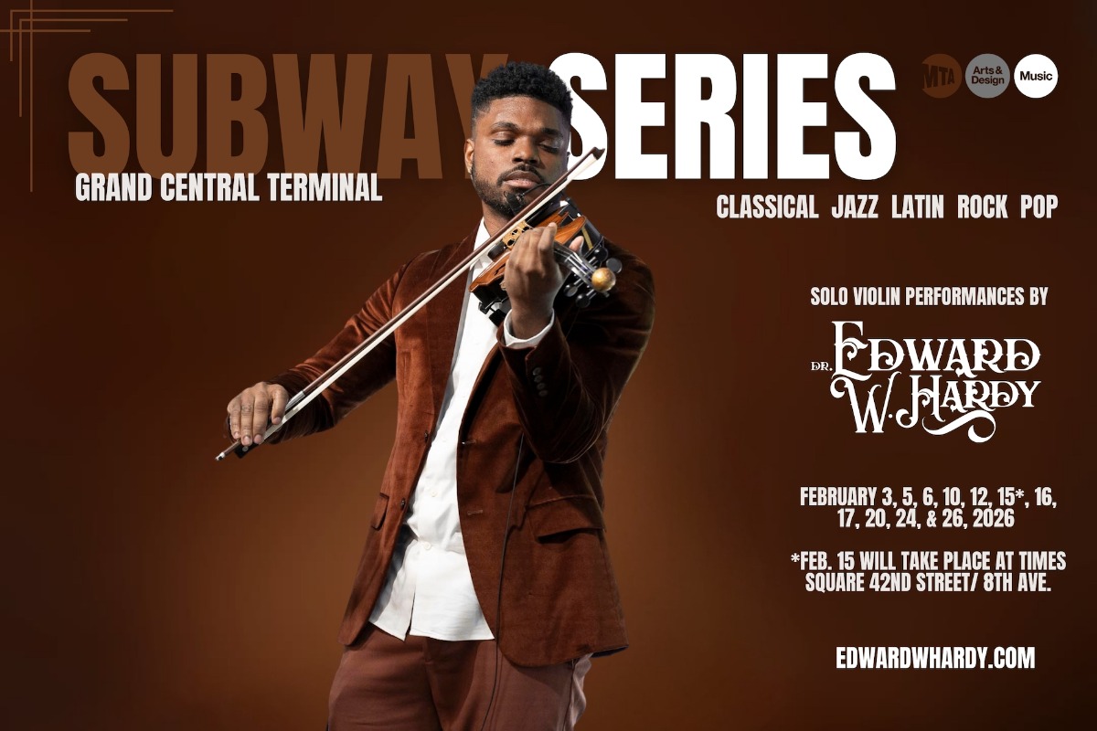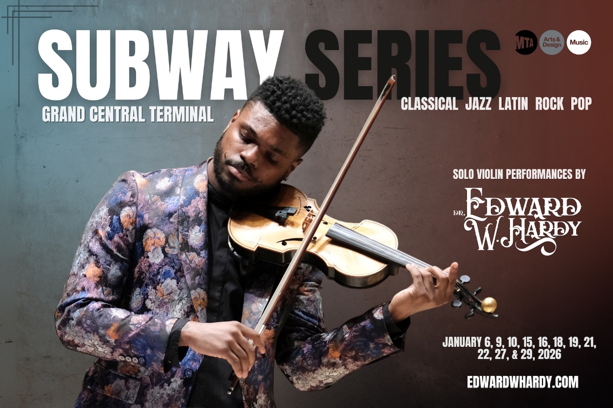 A “Subway Series” of public solo violin performances at Grand Central Terminal presented in collaboration with MTA Arts & Design and Music Under New York. Drawing from classical repertoire, jazz, Latin music, rock, and contemporary popular works, Dr. Edward W. Hardy presents a wide-ranging multi-genre program that reflects the versatility of the modern violin. Each performance is approached with the same level of preparation, professionalism, and presentation as his formal concert engagements, reinforcing his commitment to artistic excellence in both traditional and nontraditional performance spaces. These performances are intended to make high-level live music accessible to a broad public audience, fostering an inclusive environment in which the boundaries between performer and listener are intentionally dissolved.