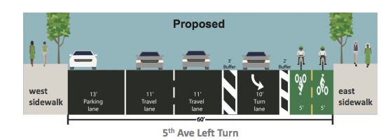 The new protected bike lane would stretch 10 city blocks on Fifth Avenue.