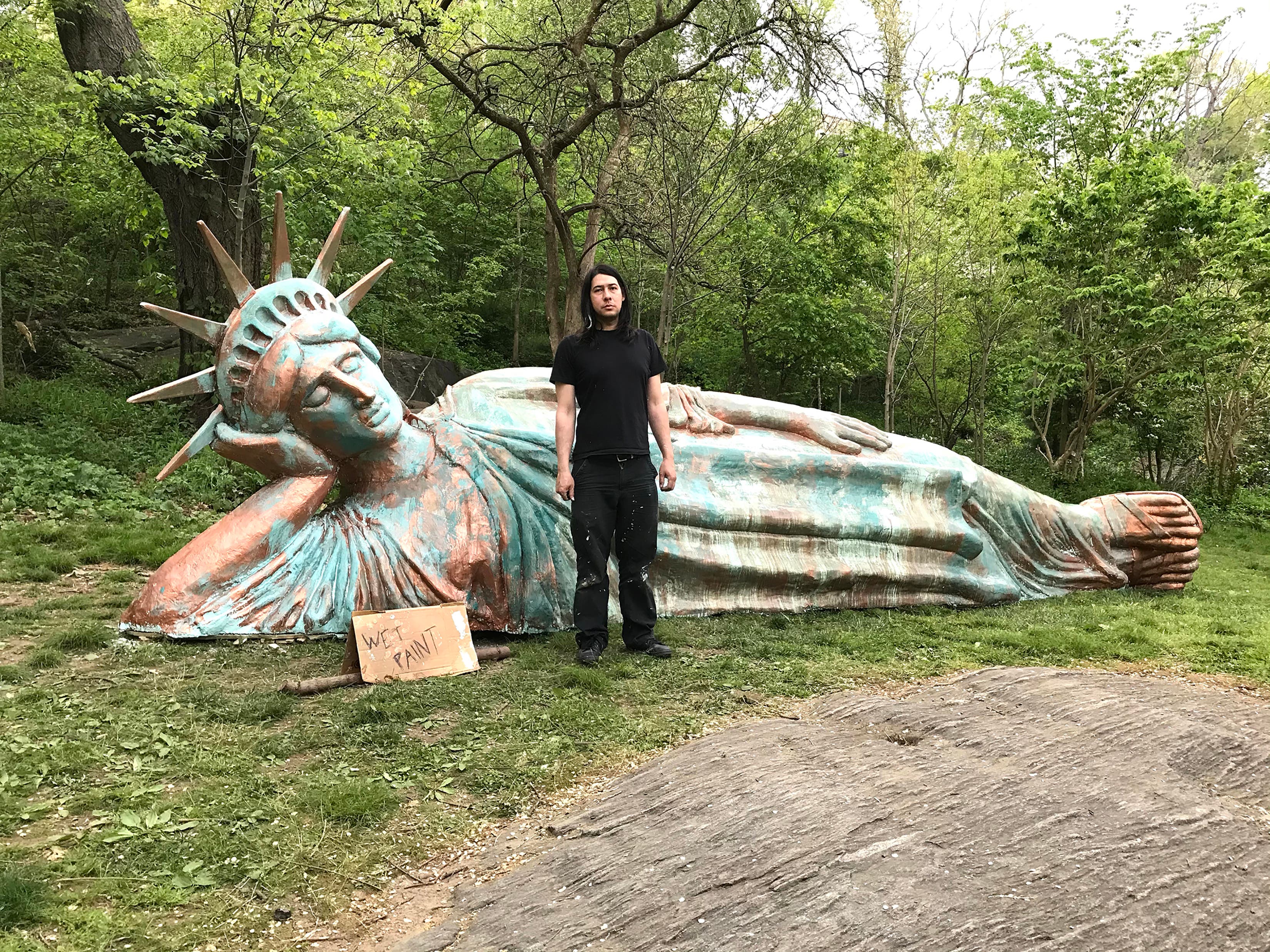 HARLEM, NY — More than six months after it was first announced, a giant sculpture depicting a reclining, weary-looking Statue of Liberty has been installed in Morningside Park, where it will entertain locals and befuddle passersby for the next year.