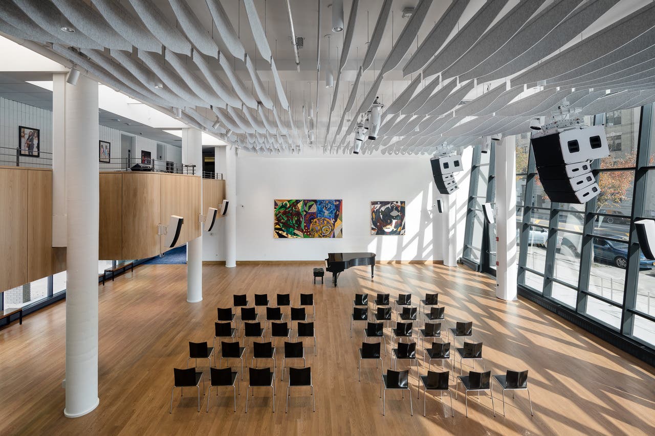 The renovated room serves as a public space and a performance hall, known formally as Dorothy Maynor Hall and informally as the Gathering Place, according to a New York Times report. New changes include an audiovisual system with acoustic curtains, production lighting and new food flooring, overseen by the acoustician John Storyk, who helped design Jimi Hendrix's Electric Lady Studios.