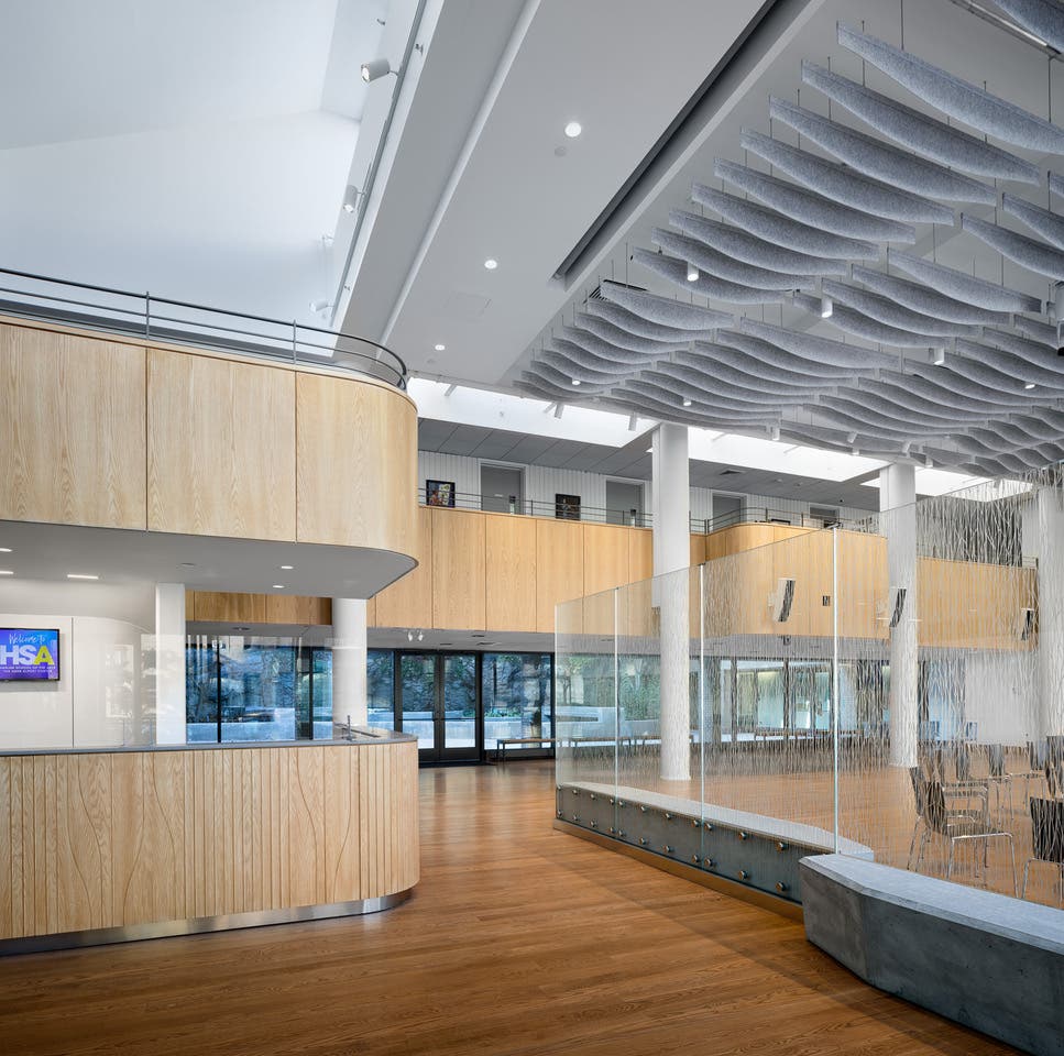 Visitors to HSA will now encounter a series of murals that visualize the school's mission and history, a sunny cafe and waiting area, and a back-garden courtyard that has also been improved as part of the renovation.