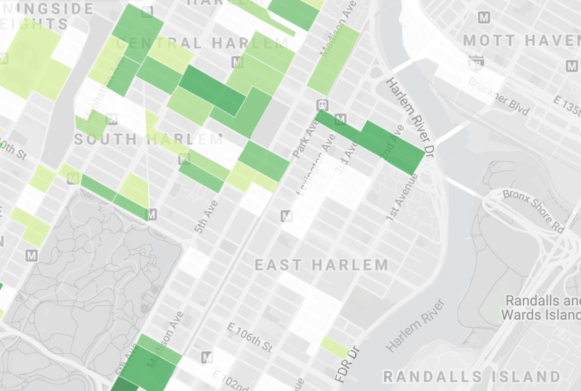 Meanwhile, the highest-spending district in all of Harlem is a two-block stretch along Fifth Avenue between East 96th and 97th streets — an area that falls within the bounds of East Harlem, though some may consider it part of the Upper East Side.