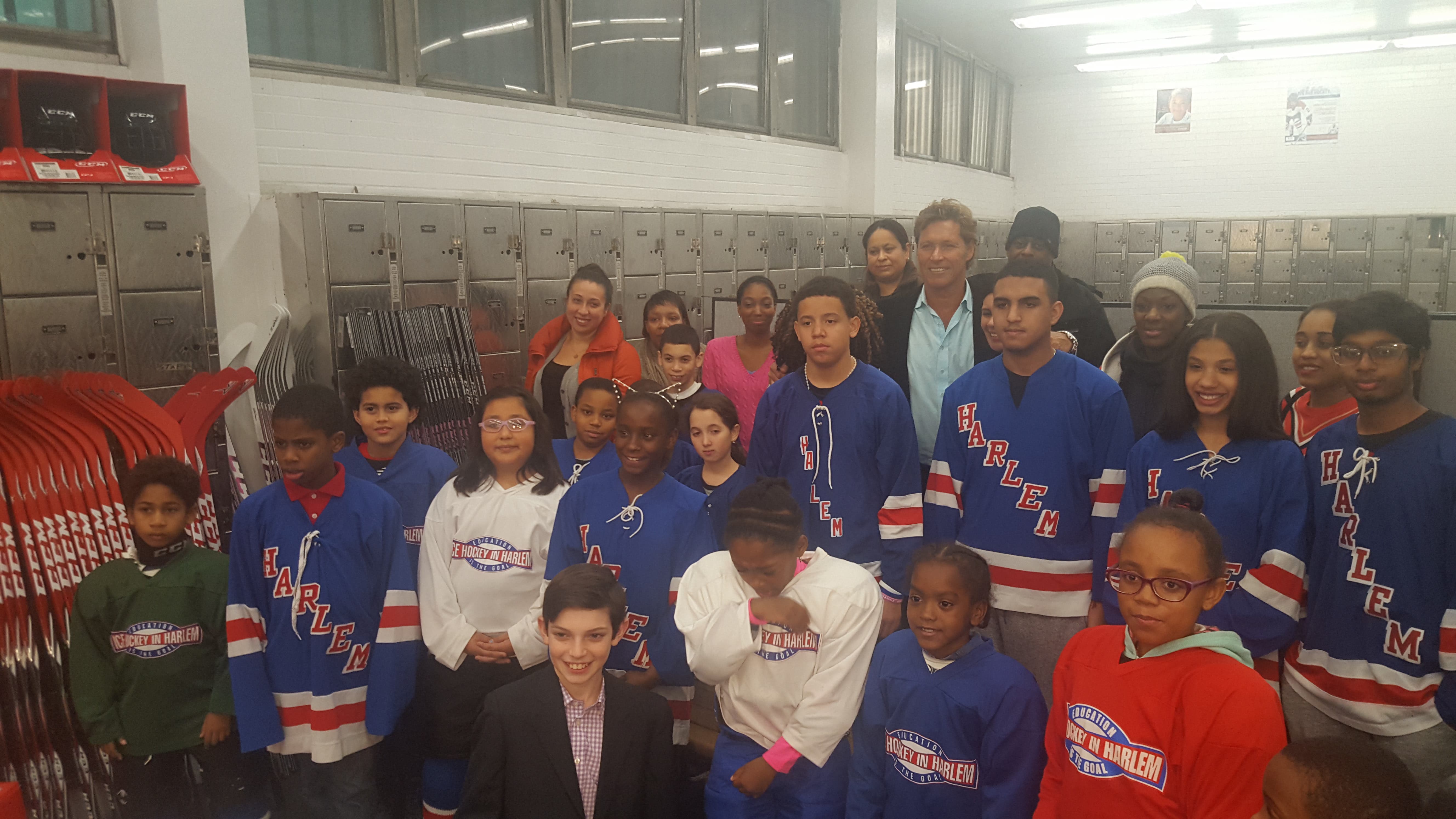 HARLEM, NY — When 12-year-old Dylan Gallagher started collecting his teammates' used hockey equipment to donate, he was just trying to do a good deed for his bar mitzvah. He didn't think his small deed would inspire one of the largest hockey equipment companies in Canada to donate $20,000 of brand-new sticks, skates and helmets to a Harlem nonprofit.