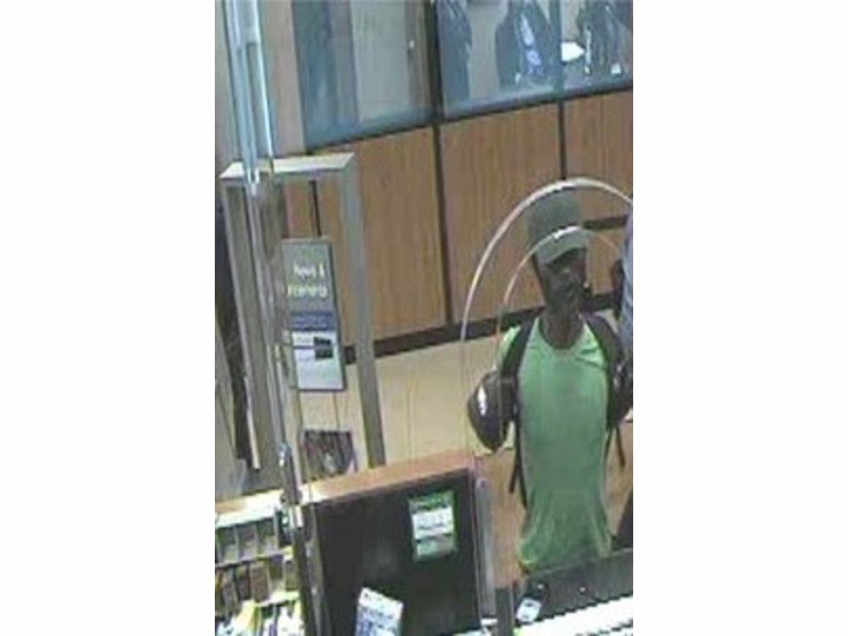 The suspect (pictured above) is approximately 40 years old, stands 5-foot-8 and weighs around 170 pounds, police said. The man was wearing a dark baseball cap, green T-shirt and dark backpack at the time of the robbery, police told Patch.