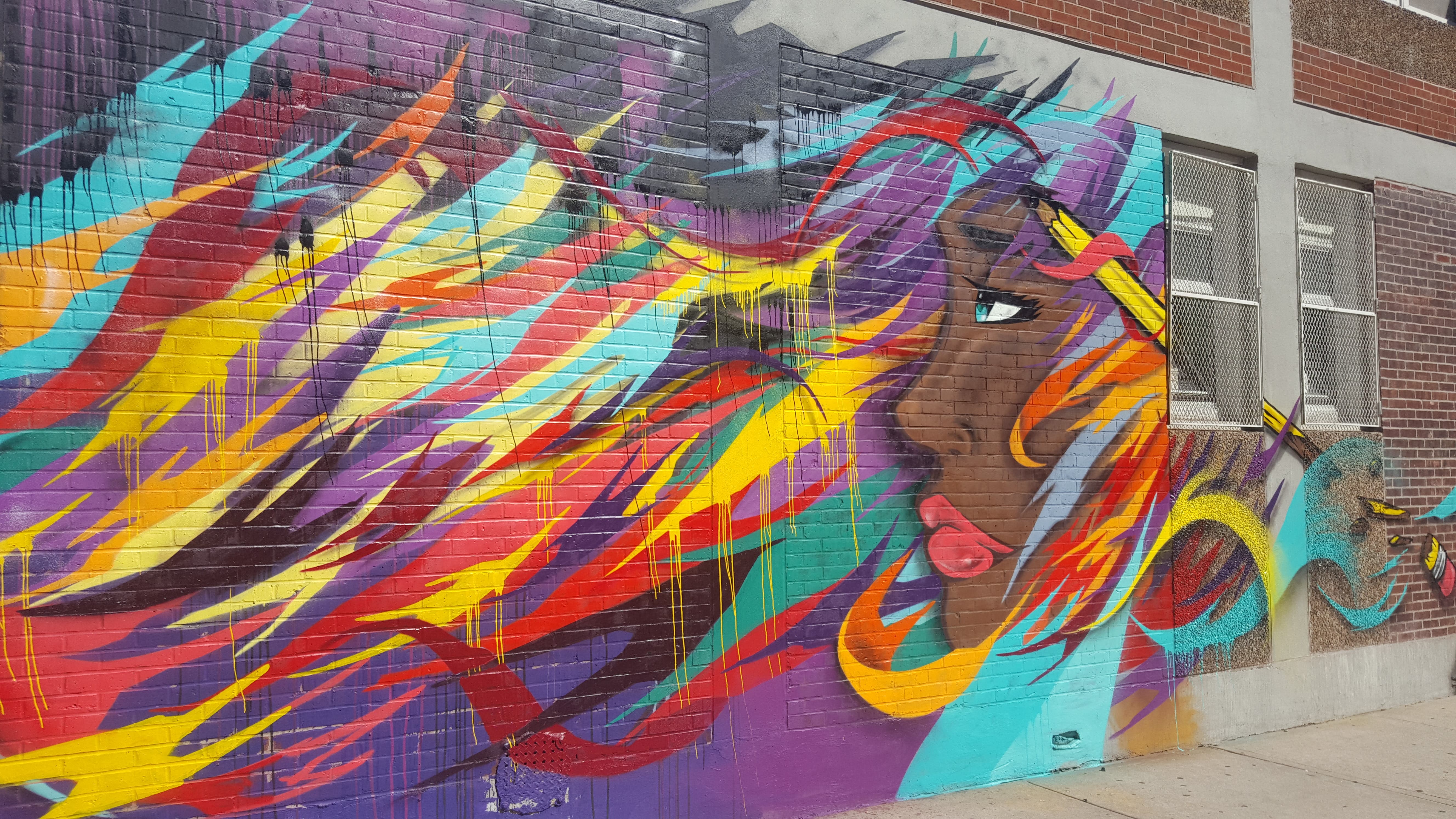 HARLEM, NY — The colors in street artist SeeOne's mural adorning a wall of P.S. 92 in Harlem represent the many opportunities education can unlock. At one end of the mural a girl's profile is depicted, and from her streams hues of red, yellow, teal, purple, green and orange. Further down the wall a glowing "orb of light" emanates with color and signifies that with education, the future is bright.