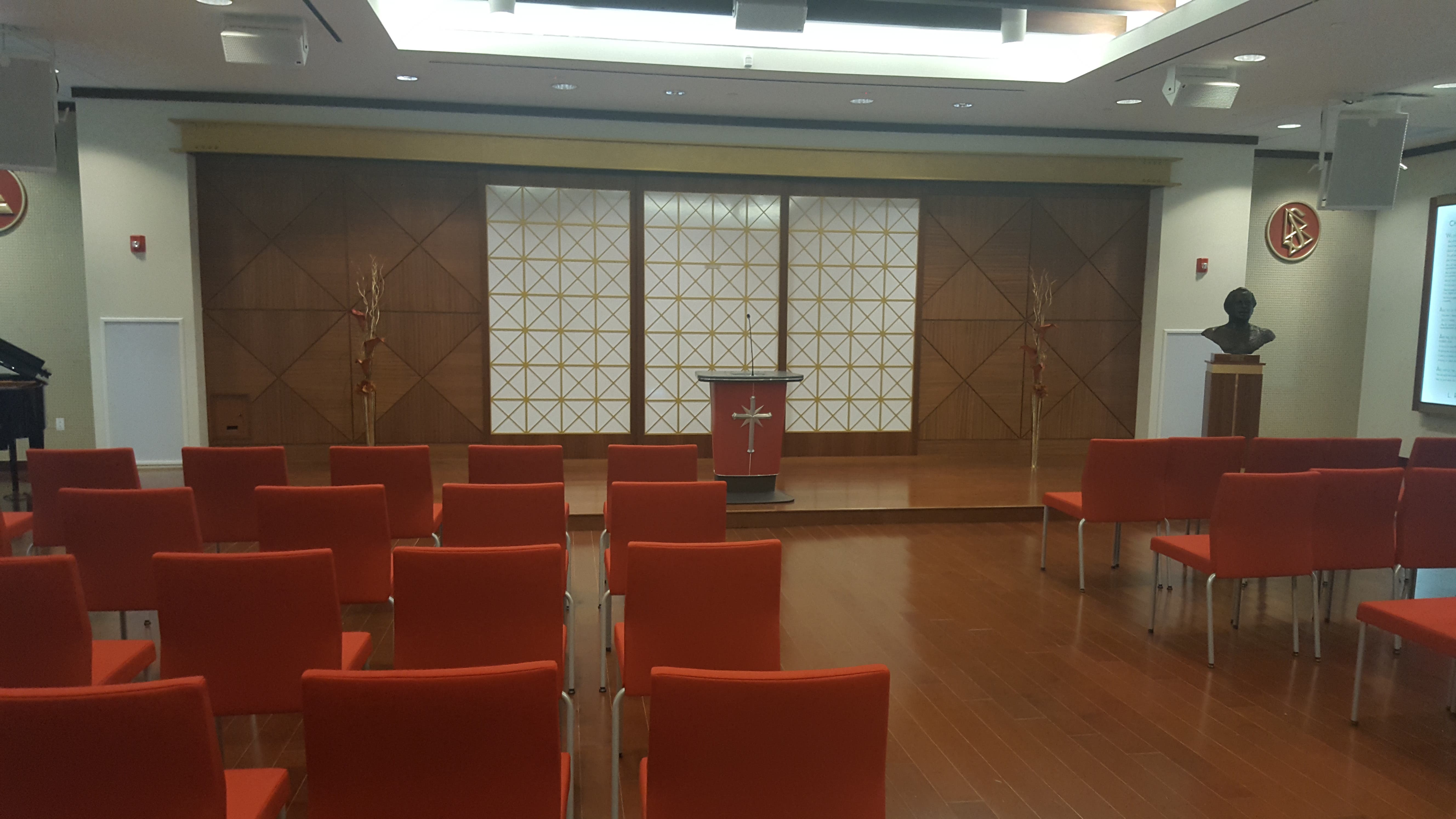 Next up is the chapel, which is used for Sunday services, marriages, funerals, baby naming, concerts and seminars, Latty said. The walls of the chapel are adorned with plaques outlining the key principals of Scientology. A one-of-a-kind mosaic lies on the floor near the front doors depicting the eight-pointed cross, Scientology's main religious symbol. Each point represents one of the eight dynamics of Scientology. Twice the points for crosses of those other religions.