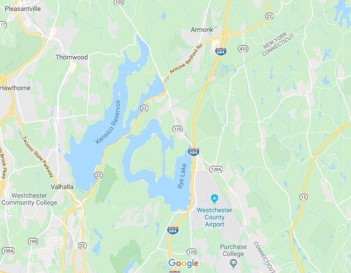 The toll plaza would go in a part of I-684 that does not include exits or entrances. The toll gantry would be sandwiched between the exit for the Westchester County Airport to the south and the exit for Armonk, home of IBM, to the north.