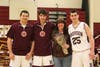 Frawley ended with one of the funnier photos in her repertoire. "Last but not least, I have a picture of Charlie Credendino, falling in a sitting position onto an opposing player on the basketball court, just as he launched the ball toward the basket, and he made the bucket."