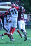 Frawley continued to her next picture. "I have one of Dennis Rinaldi, in the air and surrounded by three opposing players on the football field, and he made the catch."