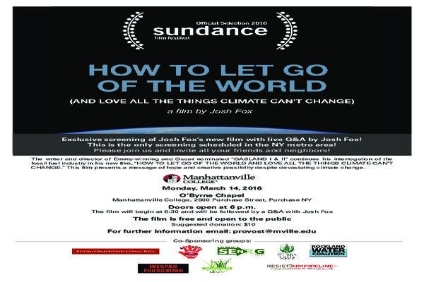 Documentary film maker, environmental activist and 2010 Oscar nominee, Josh Fox will screen and lead a discussion on his new film, How to Let Go of the World and Love All the Things Climate Can’t Change, at Manhattanville College March 14.