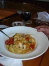 Fine pastas include: homemade cavatelli with Italian cherry tomatoes, sea scallops, snow peas, artichoke hearts with garlic and extra virgin; a decadent pappardelle 'bolognese' style, wide pasta with three meat sauce, mascarpone cheese and peas; and a very good aromatic capellini with shrimp.