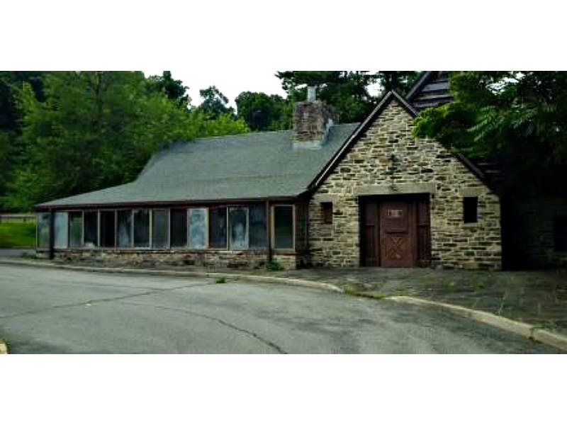 The site includes a 4,500-square-foot structure with a 2,300-square-foot slate patio. The property also has a parking lot and an additional 250-square-foot stone building. Access from the Saw Mill River Parkway is approximately a mile north of Ashford Avenue in Ardsley, adjacent to the South County Trailway.