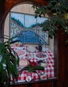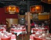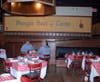 Decor: Owner Piero Casalicchio has an eye for interior design. Red and white checked tablecloths, trompe l’oeil murals extolling the joys of food and drink, and the abundant use of dark wood convey the charm and intimacy of an Old World trattoria. Richly hued walls and unique semi-translucent lighting fixtures in the main dining room impart a golden glow.