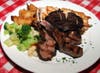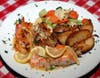 Entrees: The exceedingly diverse menu, which is augmented by a rotating repertoire of specials, provides diners with a potpourri of inviting choices. Portions are generous and entrees come with a house salad. Tre Terre ($21.95) is a succulent medley of chicken paillard (pan-seared chicken breast pounded thin and seasoned with rosemary and olive oil), grilled New Zealand lamb chops, and grilled Portobello mushrooms. In contrast, Tre Mari ($19.95) features shrimp scampi, pan-seared salmon filet and clams which have been baked in a brick oven.