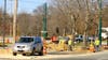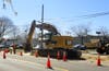 Heavy equipment brought in to begin working on expanding Route 111 in Hauppauge.