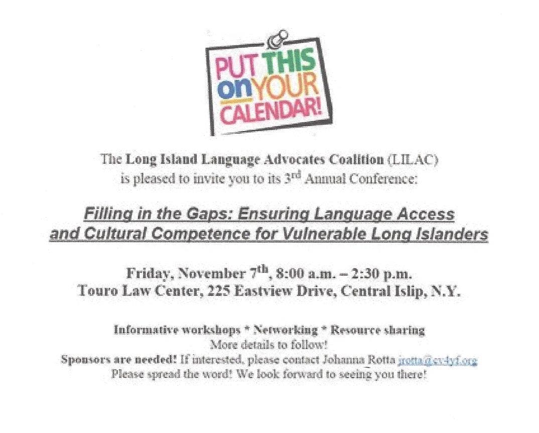 225 Eastview Drive, Central Islip, N.Y. http://www.eventbrite.com/e/long-island-language-advocates-coalition-3rd...