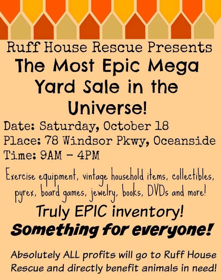 RUFF HOUSE RESCUE YARD SALE-SAT OCT-18-OCEANSIDE NY-9AM TO 4PM