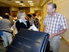 After voters check-in with election officials, they will proceed to booths to fill in the ovals for their choice candidates on the election ballots. Then, to ensure privacy, residents are instructed to put the ballots in a paper sleeve as they carry them over to the scanning machines.