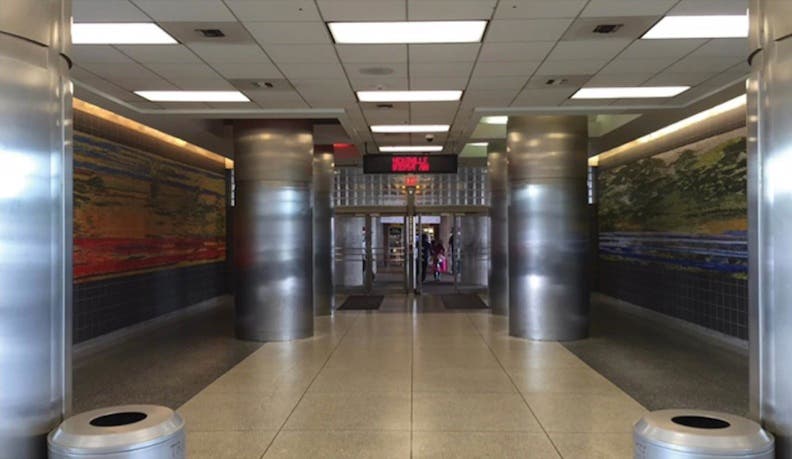 - Laminated art glass installations by New York-based artist Roy Nicholson, who designed the mosaic tile artwork in the station ticket office in 2011